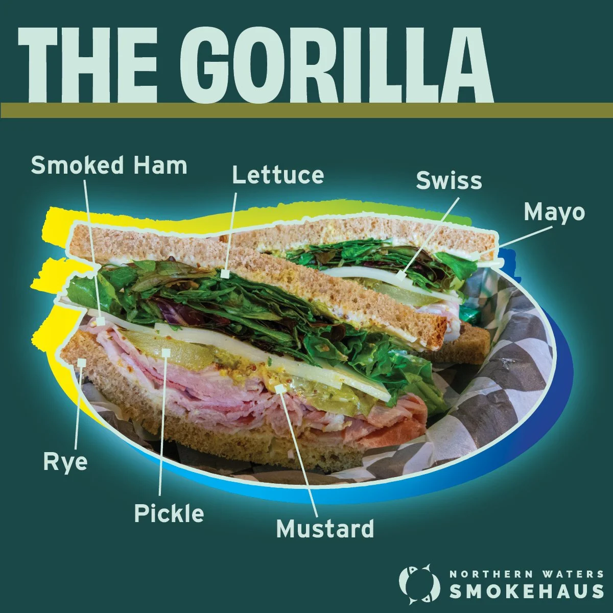 1. The Gorilla was our first Smoked Ham sandwich. It was developed by the staff alongside NWS' first batches of Smoked Ham. It's truly a pillar of NWS culture.